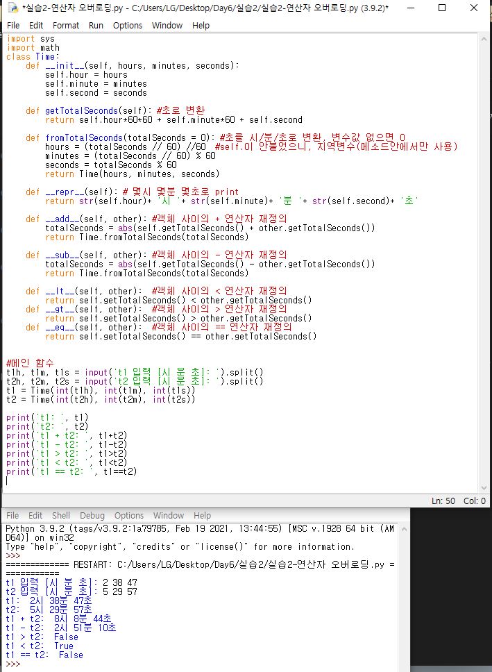 3. 객체지향 프로그래밍 (클래스 정의, self 매개변수, 특수메소드 등) 관련 실습문제2를 풀고,