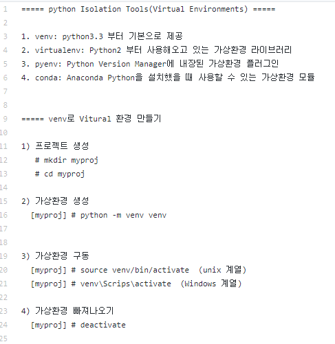 a. venv: python 3.3부터 기본으로 제공