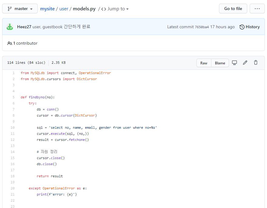 | 파이썬 교육 Day 20-1 (+ 웹페이지 만드는 프로젝트의 방명록 페이지(guestbook) 만드는법, 코드, 설명) (0) | 2021.04.09 |
