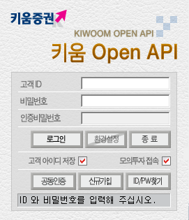 | 1. 키움증권 계좌개설, 공동인증서, Open API 개발 환경 구축 (0) | 2021.04.21 |