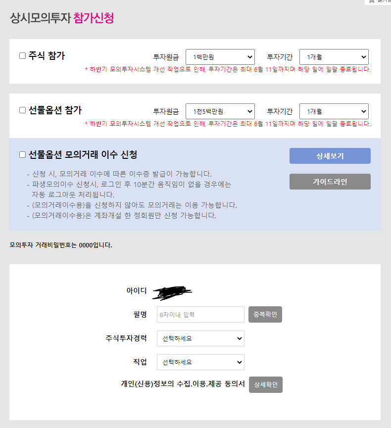 나의 경우, 주식참가 투자원금을 5백만원에 투자기간 3개월로 했다.