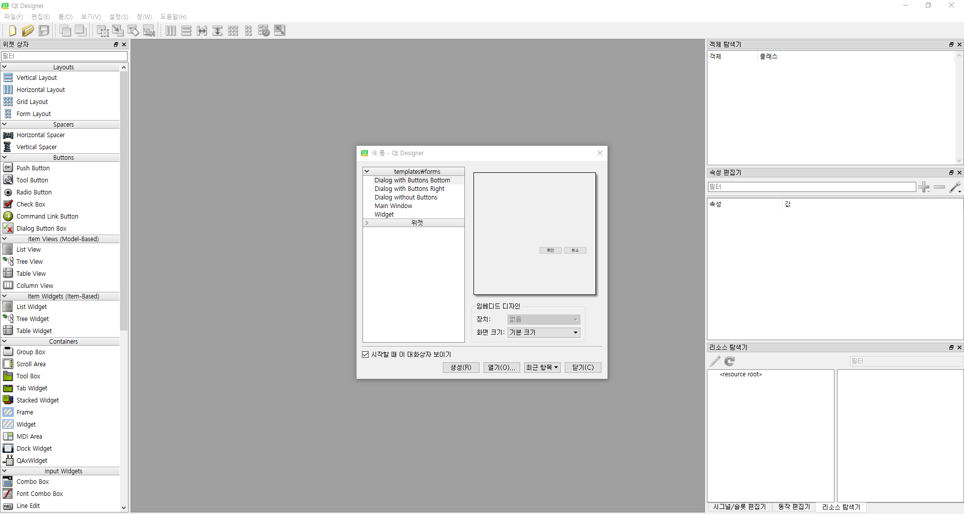 designer.exe를 실행하면 위와 같은 화면이 뜬다.
