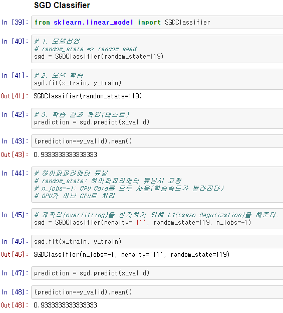파이썬 교육 Day 27 (+ 사이킷런으로 분류하기, Logistic Regression, SGD Classifier, 의사결정 트리 Decision Tree, 불필요한 경고 출력 방지 등)